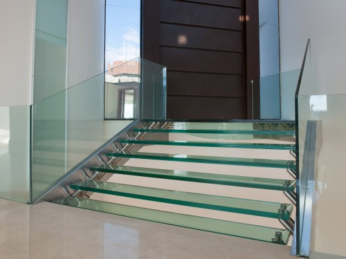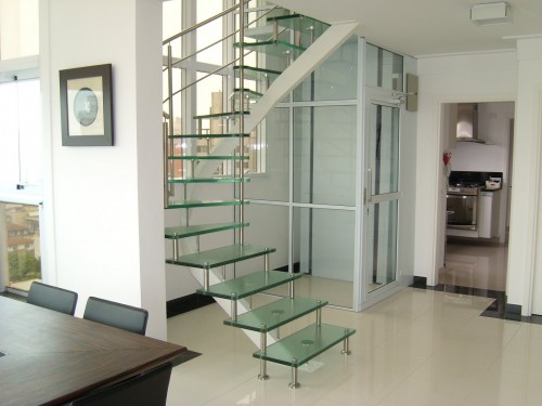 sobre escada e Piso de Vidro